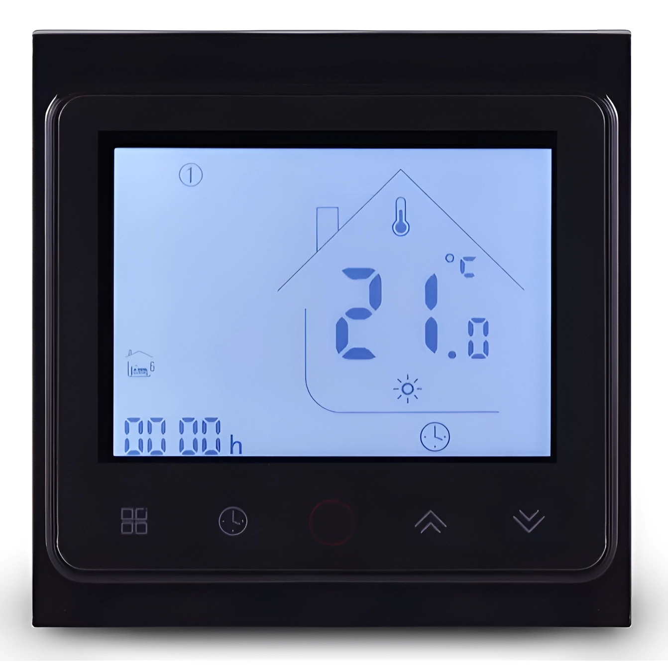 Терморегулятор оснащен сенсорным TouchScreen экраном и совместим с операционными системами IOS и Android. Поддерживает различные приложения, такие как Smart Life, Beca Smart, Tuya Smart, и другие, обеспечивая простую интеграцию в системы "Умный Дом". Размеры терморегулятора 86х86х45 мм, что позволяет установить его в обычный круглый подразетник.